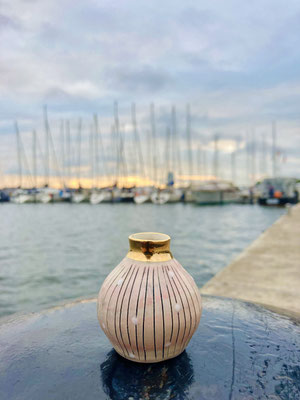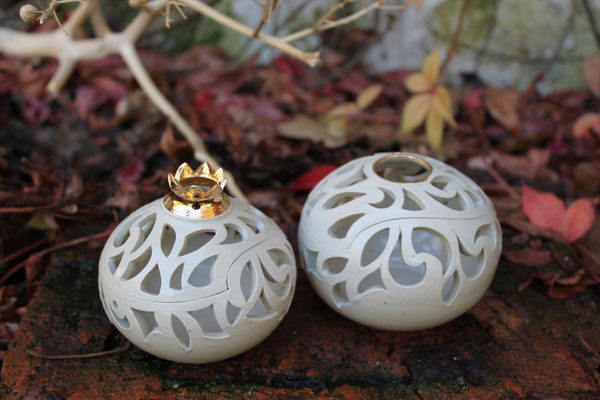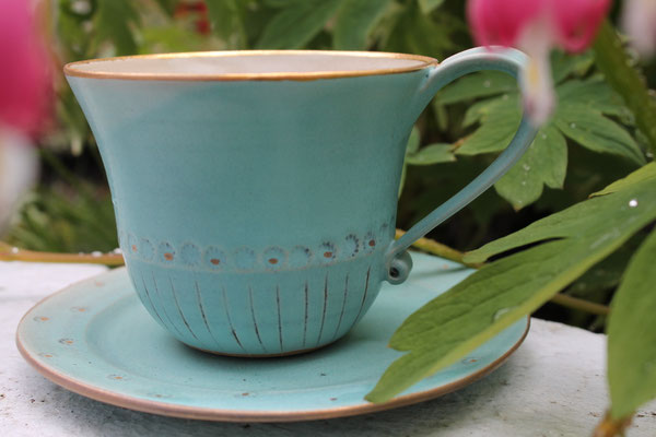 Vor rund 30 Jahren begann meine Faszination für die Keramik. All die Möglichkeiten, die dieses erdige Material bietet, brachten mich auf die Idee, mich auf die Suche nach der Leichtigkeit des Tons zu begeben. So entstehen auch heute noch meine Arbeiten, sehr dünn gedreht, in zarten Pastelltönen glasiert, bemalt und dekoriert und vom Zauber der Natur inspiriert. Veredelt mit einem Hauch Gold als krönendem Abschluss.